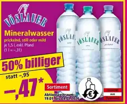 | Vöslauer Mineralwasser* 1.5 l 3+3 GRATIS | Eurospar | € 0,95 | € 0,47 | 3+3 GRATIS | 18 Dezember 2025 | 31 Dezember 2025 |