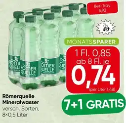 | 2 | Römerquelle Mineralwasser 0.5 l | Spar | € 0,85 | € 0,74 | € 0,11 Rabatt | 16 April 2026 | 23 April 2026 | Angebot ansehen | |