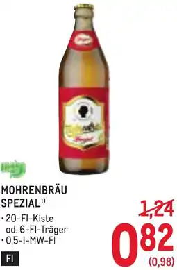 | Mohrenbräu spezial 0.5 l | Metro | € 1,01 | € 0,84 | € 0,17 Rabatt | 19 März 2026 | 01 April 2026 | |