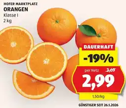 | Hofer Marktplatz Orangen 2 kg | Hofer | € 3,69 | € 2,99 | € 0,70 Rabatt | 06 Februar 2026 | 13 Februar 2026 | |