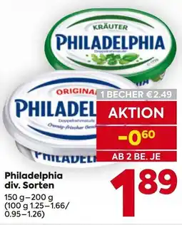 | Philadelphia Frischkäse 150 g- 200 g | Sutterlüty | € 1,29 | 02 April 2026 | 07 April 2026 | |||