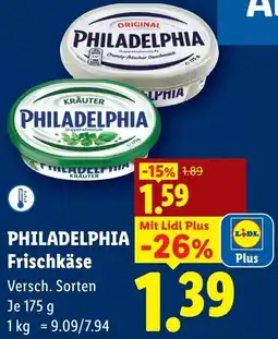| Philadelphia Frischkäse versch. Sorten Lidl Plus Vorteilspreis 175 Gramm 1 Becher | Lidl | € 1,99 | € 1,49 | € 0,50 Rabatt | 19 September 2024 | 25 September 2024 | |