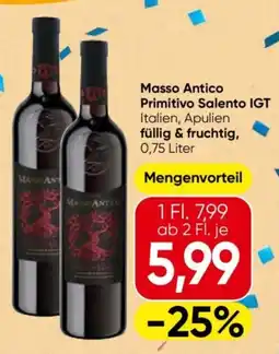 | 2 | Masso Antico Primitivo Salento IGT 0.75 L | Eurospar | € 7,99 | € 5,99 | -25% | 05 Februar 2026 | 25 Februar 2026 | Angebot ansehen | |