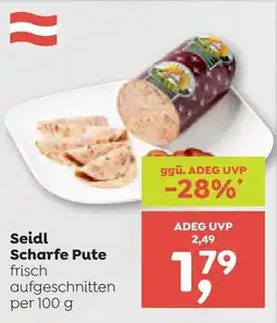 | Seidl Scharfe Pute frisch 100 g | ADEG | € 2,49 | € 1,79 | € 0,70 Rabatt | 13 März 2025 | 19 März 2025 | |