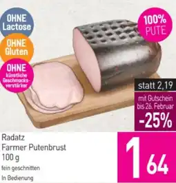 | 2 | Radatz Farmer Putenbrust 100 g | Sutterlüty | € 2,19 | € 1,64 | -25% | 19 Februar 2026 | 25 Februar 2026 | Angebot ansehen | |