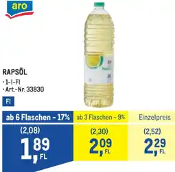 Rapsöl, Preisangabe ohne MwSt. (Preis inkl. MwSt. 2,08 €), METRO