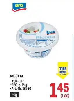 | Ricotta, Preisangabe ohne MwSt. (Preis inkl. MwSt. 7,44 €), METRO | Metro | € 8,45 | € 6,76 | € 1,69 Rabatt | 27 November 2025 | 10 Dezember 2025 | |