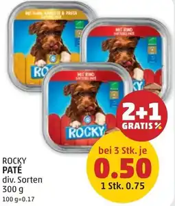 | Rocky Hundenahrung Paté 0.3 kg | PENNY | € 0,75 | € 0,50 | € 0,25 Rabatt | 30 April 2026 | 07 Mai 2026 | |