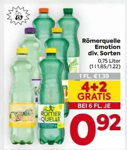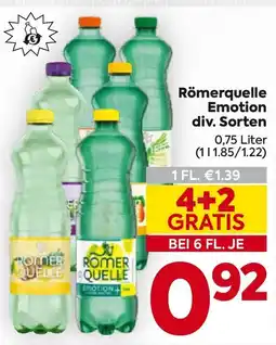 | Römerquelle Emotion 0.75 L 4 + 2 gratis | Billa | € 1,39 | € 0,92 | € 0,47 Rabatt | 03 April 2025 | 09 April 2025 | |