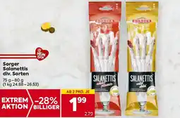 | Sorger Salanettis mild oder scharf oder Salanetti Bits Klassik 80 g | Spar | € 2,29 | Ersparnis 0,40 | 13 November 2025 | 10 Dezember 2025 |
