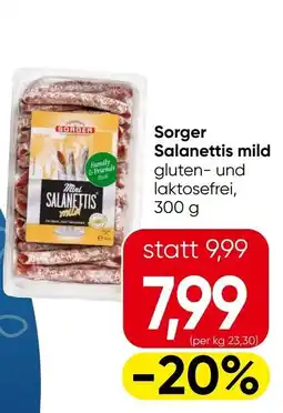 | 2 | Sorger Salanettis mild 300 g | Eurospar | € 9,99 | € 7,99 | -20% | 23 April 2026 | 06 Mai 2026 | Angebot ansehen | |