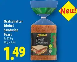 | 4 | Grafschafter Dinkel Sandwich Toast 375 g | Lidl | € 1,49 | 05 Februar 2026 | 11 Februar 2026 | Angebot ansehen | |||