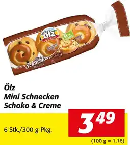 | Ölz Mini-Schnecken Schoko & Creme 300 g | Billa | € 4,39 | € 3,49 | € 0,90 Rabatt | 06 November 2025 | 12 November 2025 | |