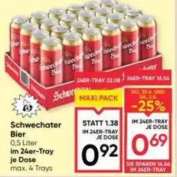 | Schwechater Bier im 24er-Tray je Dose | Maximarkt | € 1,25 | € 0,62 | € 0,63 Rabatt | 23 Dezember 2024 | 31 Dezember 2024 | |