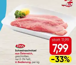 | Schweinsschnitzel | Interspar | € 11,99 | € 7,99 | 33% BILLIGER | 22 Jänner 2026 | 28 Jänner 2026 | |
