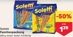 | Soletti Salzstangerl Classic oder Sesam 230 g 2+1 gratis! | Sutterlüty | € 2,79 | € 1,86 | € 0,93 Rabatt | 05 Februar 2026 | 10 Februar 2026 | |