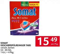 | SOMAT GESCHIRRSPÜLREINIGER TABS 54-85 Stk | Transgourmet | € 13,99 | 24 Juni 2024 | 29 Juni 2024 | |||