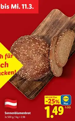 | Sonnenblumenbrot | Lidl | € 1,49 | 02 Jänner 2026 | 07 Jänner 2026 | |||