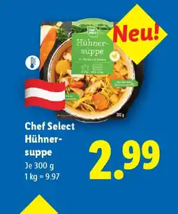 | 10 | Chef select hühner- suppe 300 g | Lidl | € 2,99 | 22 Jänner 2026 | 28 Jänner 2026 | Angebot ansehen |