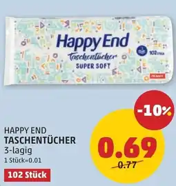 | 1 | Happy end taschentücher | PENNY | € 0,77 | € 0,69 | -10% | 30 April 2026 | 07 Mai 2026 | Angebot ansehen | |