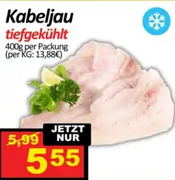 | Kabeljau tiefgekühlt, roh 400 g | Wurstico | € 5,99 | € 5,55 | € 0,44 Rabatt | 11 September 2025 | 17 September 2025 | |