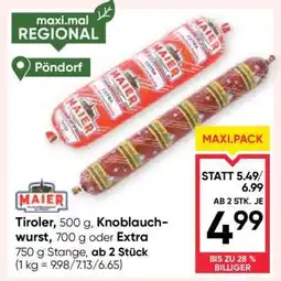 | Tiroler, Knoblauchwurst oder Extra Maximarkt | Maximarkt | € 6,99 | € 4,99 | € 2,00 Rabatt | 24 März 2025 | 29 März 2025 | |