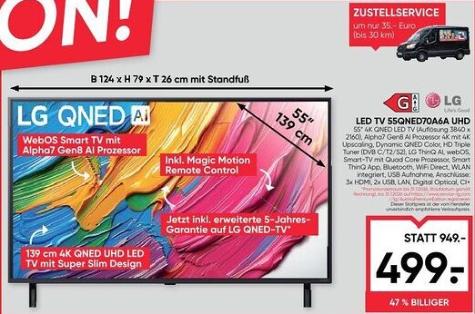 | 1 | ![]() | Led tv 55qned70a6a uhd | Maximarkt | € 499,00 | 05 Februar 2026 | 11 Februar 2026 | Angebot ansehen | ||