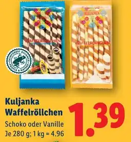 | Kuljanka Waffel- röllchen | Lidl | € 1,39 | 02 Oktober 2025 | 08 Oktober 2025 |