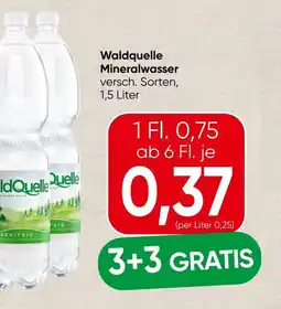 ADEG Waldquelle Mineralwasser AngebotWaldquelle Mineralwasser 1.5 l 3+3 GRATISADEG€ 0,74€ 0,373+3 GRATIS26 März 202608 April 2026