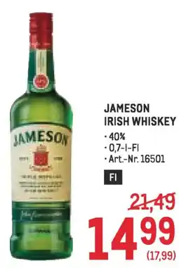 | 1 | Jameson irish whiskey 0,7 l | Metro | € 21,49 | € 14,99 | € 6,50 Rabatt | 05 März 2026 | 18 März 2026 | Angebot ansehen | |