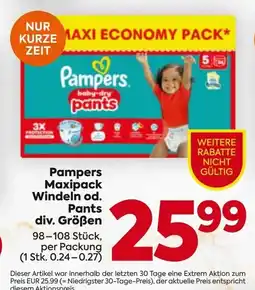 | Pampers windeln baby dry, pampers baby dry pants oder pampers premium protection | Spar | € 9,99 | € 7,49 | -25% | 05 Februar 2026 | 11 Februar 2026 | |