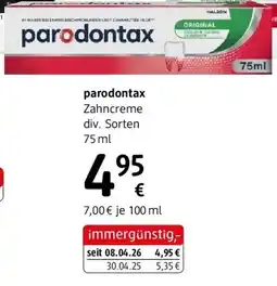 | 4 | Parodontax Zahncreme Original Fluorid 0.075 l | Billa | € 5,49 | € 4,29 | € 1,20 Rabatt | 07 April 2026 | 16 April 2026 | Angebot ansehen | |