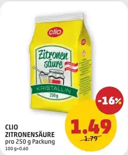 | Clio zitronensäure | PENNY | € 1,79 | € 1,49 | -16% | 25 September 2025 | 01 Oktober 2025 | |