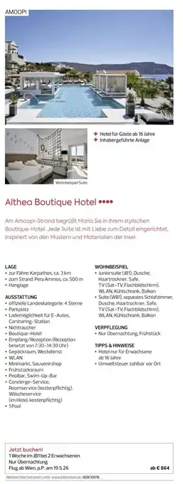 Jetzt im Angebot bei Billa Reisen: Althea Boutique Hotel ✅ Aktion gültig von 16-12 bis 1-09.
