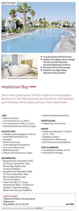 Jetzt im Angebot bei Billa Reisen: Mastichari Bay ✅ Aktion gültig von 16-12 bis 1-09.