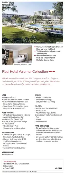 Den Preis von Pical Hotel Valamar Collection finden Sie oben auf der Website, zusammen mit dem Datum, ab wann das Angebot erhältlich ist. Sie finden die Preise auch im aktuellen Billa Reisen Flugblatt oder auf der Billa Reisen Website. Durch die Angebote aus dem Flugblatt können Sie sicher sein, die Billa Reisen Produkte zum garantiert besten Preis zu ergattern.