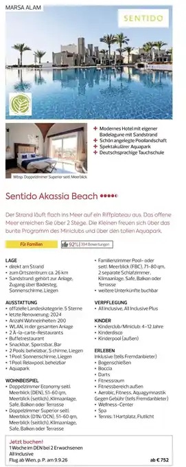 Den Preis von Sentido Akassia Beach finden Sie oben auf der Website, zusammen mit dem Datum, ab wann das Angebot erhältlich ist. Sie finden die Preise auch im aktuellen Billa Reisen Flugblatt oder auf der Billa Reisen Website. Durch die Angebote aus dem Flugblatt können Sie sicher sein, die Billa Reisen Produkte zum garantiert besten Preis zu ergattern.