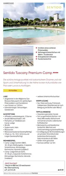 Jetzt im Angebot bei Billa Reisen: Sentido Tuscany Premium Camp ✅ Aktion gültig von 16-12 bis 1-09.
