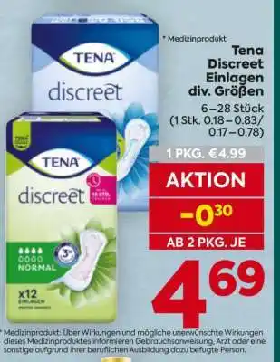 Top Tena discreet Einlagen div. Größen Angebote und Aktionen bei Billa