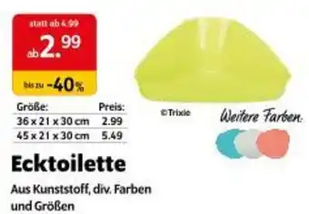 Das Angebot finden Sie in unterschiedlichen Geschäften. Schauen Sie sich alle Produkte aus dem Flugblatt an, um das günstigste Ecktoilette zu ergattern. Wenn Sie gerne nachschauen möchten, ob der Artikel woanders noch günstiger ist, sollten Sie sich die Kategorie 'Tiere' anschauen. Möglicherweise sind diese Flugblattangebote auch interessant für Sie: Ecktoilette, Angebot 2 & Angebot 3.
