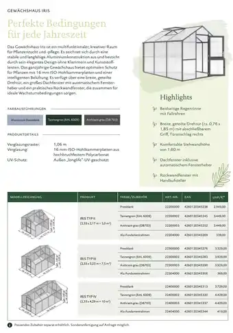 Gewächshaus iris Aktionen und Angebote vergleichen
