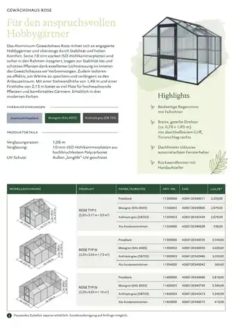 Das Angebot finden Sie in unterschiedlichen Geschäften. Schauen Sie sich alle Produkte aus dem Flugblatt an, um das günstigste Gewächshaus rose zu ergattern. Wenn Sie gerne nachschauen möchten, ob der Artikel woanders noch günstiger ist, sollten Sie sich die Kategorie 'Garten' anschauen. Möglicherweise sind diese Flugblattangebote auch interessant für Sie: Gewächshaus, Rose & Rose.