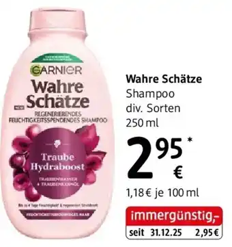 Das Angebot finden Sie in unterschiedlichen Geschäften. Schauen Sie sich alle Produkte aus dem Flugblatt an, um das günstigste Wahre Schätze Shampoo div. Sorten dm zu ergattern. Wenn Sie gerne nachschauen möchten, ob der Artikel woanders noch günstiger ist, sollten Sie sich die Kategorie 'Drogerie und Parfümerie' anschauen. Möglicherweise sind diese Flugblattangebote auch interessant für Sie: Garnier Wahre Schätze Shampoo, Shampoo div. Sorten dm & Shampoo div. Sorten dm.