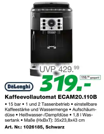 Top Kaffeevollautomat ECAM20.110B Angebote und Aktionen bei EP