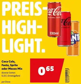 Coca Cola, Fanta, Sprite oder Mezzo Mix 0.33 l