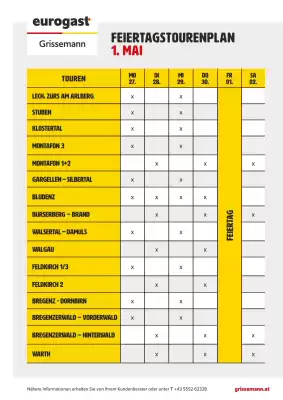 Das neue Flugblatt von Eurogast Grissemann wird in der Regel jedes Wochenende veröffentlicht. Oft ist das Flugblatt für nächste Woche schon einige Tage vorher auf Flugblattangebote.at verfügbar. So kannst du dir frühzeitig einen Überblick verschaffen und mithilfe der Vorschau deine Einkäufe besser planen. Die Werbung dieser Woche und kommende Highlights sind damit immer griffbereit.