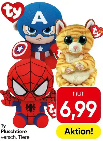 Das Angebot finden Sie in unterschiedlichen Geschäften. Schauen Sie sich alle Produkte aus dem Flugblatt an, um das günstigste Ty Plüschtiere zu ergattern. Wenn Sie gerne nachschauen möchten, ob der Artikel woanders noch günstiger ist, sollten Sie sich die Kategorie 'Supermärkte' anschauen. Möglicherweise sind diese Flugblattangebote auch interessant für Sie: TY Squishy Beanies, Ty Plüsch Squishy Beanies & TY Squishy Beanies 35 cm.