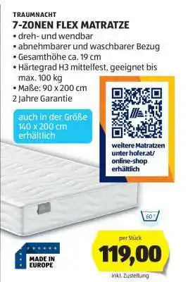Jetzt im Angebot bei Hofer: 7-ZONEN FLEX MATRATZE ✅ Aktion gültig von 20-02 bis 28-02.