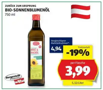 Jetzt im Angebot bei Hofer: BIO-SONNENBLUMENÖL ✅ Aktion gültig von 23-01 bis 29-01.
