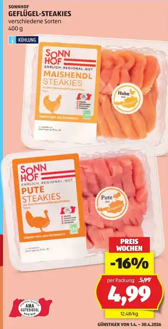 Jetzt sparen mit den besten Sonnhof Geflügel-Steakies Angeboten